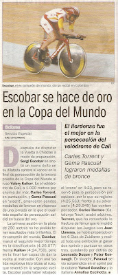 Malauradament una punxada i un canvi de bicicleta pel cantó per on no es podia del box, han impedit puntuar tot i acabar-la en 4t lloc. Peró, malgrat aixó la seva bona actuació d'avui i en les altres curses han fet que el seleccionador català, Sr. Parreño, l'hagi seleccionat per anar dintre d'un parell de caps de setmana a competir a la Copa de España a celebrar al País Basc.